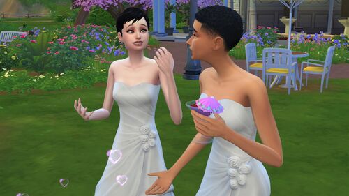 初心者の世代交代プレイ 目次 56日目の土曜日。アンバーが恋人のダドリー氏をデートに誘いました。行先はWillow Creekアーカイブです。2人の出会いの場でもある図書館(の裏)で、プロポーズしたいと思います。 受け入れてもらえました!成功の喜びに拳をぐ…
