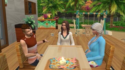 初心者の世代交代プレイ 目次 41日目の木曜日。双子の母クロエが遊びに来てくれました。 人魚のヘケキアくんも。仕事でよくムア・ペラムに行くので人魚との遭遇率が高く、けっこう仲良くなれています。 妊娠後期なのでお腹を触ってもらいました。クロエにと…